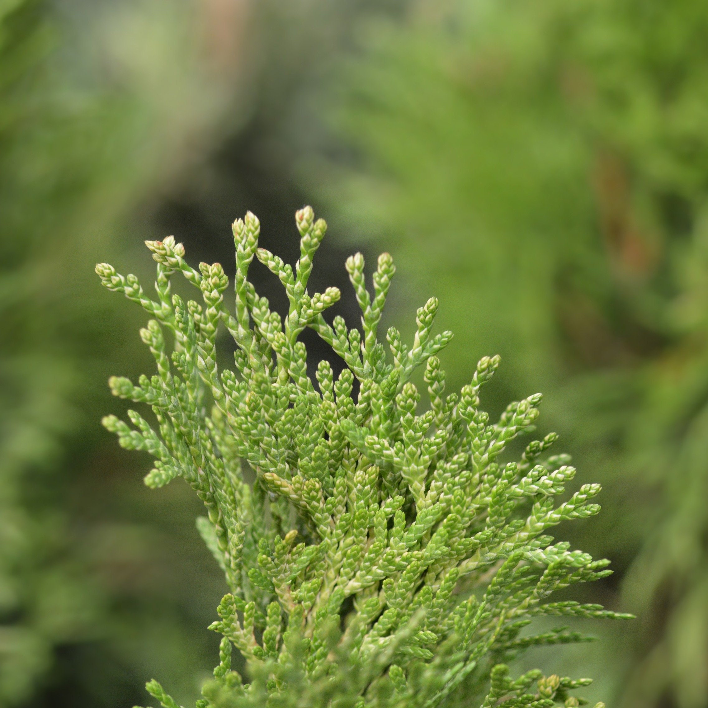 Dwarf cedar with a symmetrical pyramidal habit and glossy bright green foliage in flat lacy sprays. Our Number is 215 651 8329. It grows about 3.